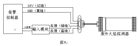 (4)核中警JTGB-ZW-1501型防爆紫外火焰感光探測器安裝接線示意圖(見圖9)