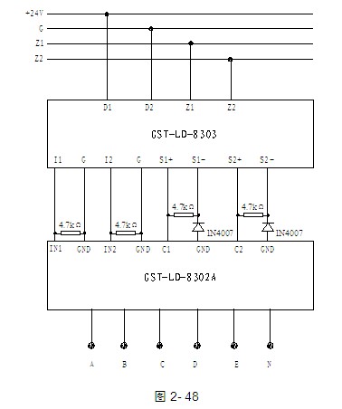 b.GST-LD-8303型模塊與GST-LD-8302A型模塊組合連接的方法如圖2-48所示: