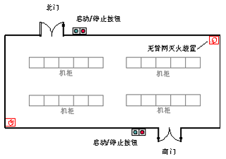 如右圖,北門出口的人認為火災已經無法控制而按下了啟動按鈕,然后匆忙離開了現場,而南門出口的人認為火勢并不大,用滅火器應該可以撲滅,南門人按下了停止按鈕,系統當然在延時噴放階段停了下來。南門人經過一番努力后發現火勢自己無法控制,然后在南門位置的按鈕上連續兩次按下啟動按鈕后,氣體滅火系統啟動并即刻滅掉了火災。從北門啟動按鈕被按下到南門二次啟動滅火系統間隔時間共2分鐘,火災狀況下每一秒鐘都很珍貴。火是被滅掉啦,但燃燒時間卻被延長了2分鐘。且不說設備損壞程度, 2分鐘以前的火災威脅和2分鐘之后的火災威脅出入很大,就火災危險性而言就有天壤之別。這就是嚴重的耽誤滅火事機并分化了人員力量。